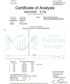 A: All Ipamorelin 10mg from eupeptidelap.co.uk is tested to >97.0% purity by RP-HPLC . Each batch is individually analyzed, and Certificates of Analysis are provided with every order, ensuring you receive material suitable for rigorous research applications.